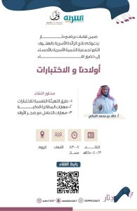 يدعوكم نادي الرائدة الأسرية بالعيون التابع لجمعية التنمية الأسرية بالأحساء إلى برنامج دثار العنوان:كيف نحمي...