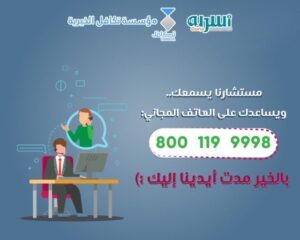مستشارونا في انتظارك على الرقم المجاني 8001199998 تكافل بالشراكة مع أسرية.